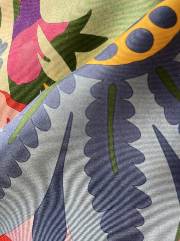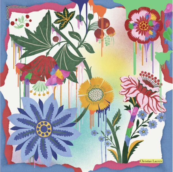 Carré en soie aux fleurs éclatantes et couleurs vives, relevé de touches artistiques façon peinture. Un accessoire audacieux et raffiné, parfait pour donner du caractère à votre style.